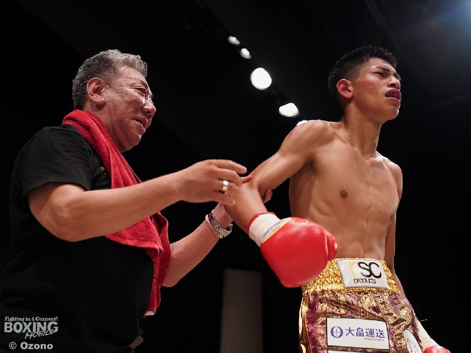 激戦を制したエスピノサは、「ダウンを奪ってから、そのまま仕留めようと思ったが、相手がタフでスタミナが切れた。2ラウンドが終わって会長(大鵬健文会長)から檄が飛んで、もう一度立て直した。ボディが効いたのがわかったので、ここですべてを出し切った。反省点が多い試合だった」と振り返った。