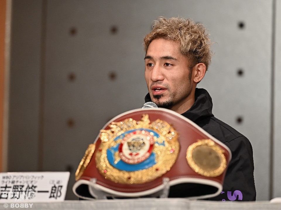 ライト級で、世界を目指す両者による頂上決戦を2日後に控える中、吉野は「この試合に勝った方が、世界につながる。冷静さを保って、コンディションを作れば勝てる。自分を信じて、最終ラウンドは打ち合いになるので、打ち負けず打ち勝ちたい」と、国内最強をアピールする試合に向けて、気持ちを込めた。明日、前日計量を迎えるが、「減量は大丈夫なので、今日は休みます。目の前の試合に集中したい」と調整が上手くいったことを伝えた。