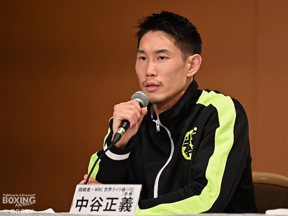 この日、アメリカのリングで、約10ヶ月ぶりの試合に臨んで、判定勝利を収めた世界最高峰に君臨するワシル・ロマチェンコ(ウクライナ)とも対戦した経験を持つ中谷は「簡単な相手ではない。しんどい試合展開になっても、しっかり戦えるようにしたい。しっかり、自分のボクシングをしたいと思います」と述べると「勝った後のことは、勝った後に考えます」と目の前の試合にだけ集中。リミットまで1キロと、体重調整も予定通りに進んでいることを明かすと「軽く動いて」明日の前日計量に臨むとした。