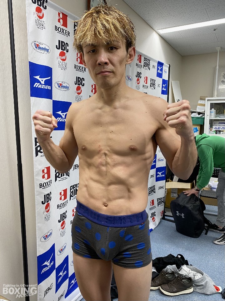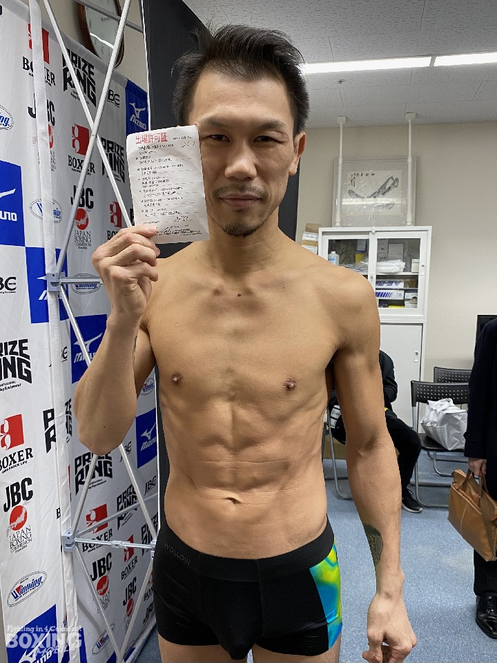 田村は、スーパーバンタム級リミットちょうどの55.3sでパスしたが、古橋は、300gオーバー。しかし、1時間後の再計量で、リミットちょうどの55.3sでクリアした。