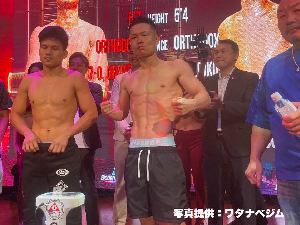 A級初戦に臨む細川兼伸(21=ワタナベ)は54.9kg契約8回戦で、OPBF東洋太平洋バンタム級12位のロニー・バルドナド(27=比)と拳を交える。両者とも、契約体重ちょうどで秤を降りた。2試合連続KO中の細川がOPBFランカー撃破を目指す。