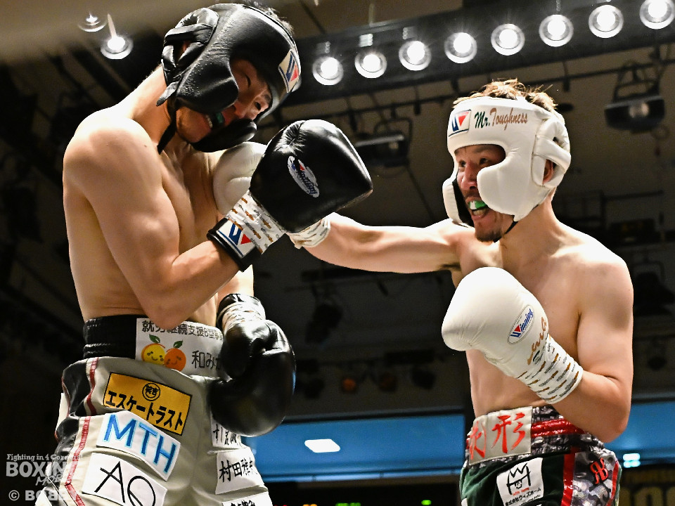セレモニーでは、元OPBF東洋太平洋バンタム級王者の栗原慶太(33=KOD)と2ラウンドのスパーリングを披露。かつて計画されながら実現しなかった王座統一戦の"続き"が、7年の時を経てリング上で実現した。栗原の振り抜いた右オーバーハンドに対し、齊藤も真っ向から応戦。息を切らしながらも打ち返し、会場を大きく沸かせた。