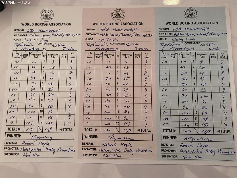 ベルト奪取に闘志を燃やす田中だったが、王者ノックアウトのテクニックが上回った。初回、田中はジャブをヒットし幸先の良いスタートを切ったが、ノックアウトはボディにコツコツと当てていくと3回に左フックでダウンを演出。その後も距離を詰めて細かいパンチでポイントを加点した。後半、逆転を狙う田中は巻き返しを図ったが決定打を打ち込むことができなかった。12度目の防衛に成功したノックアウトは21戦全勝(7KO)、一方世界王座に手が届かなかった田中は27戦19勝(10KO)8敗とした。