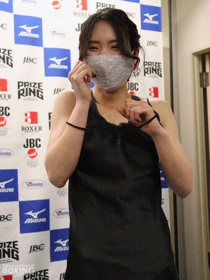 2度目の防衛戦の岩川は、アトム級リミット(46.2s)を200g下回る46.0kgでパスした。姫路から新幹線で約3時間かけて東京入りしたという岩川は「朝はパンとコーヒーを口にした。最高の朝食でした!」と万全のコンディションに笑顔を見せた。