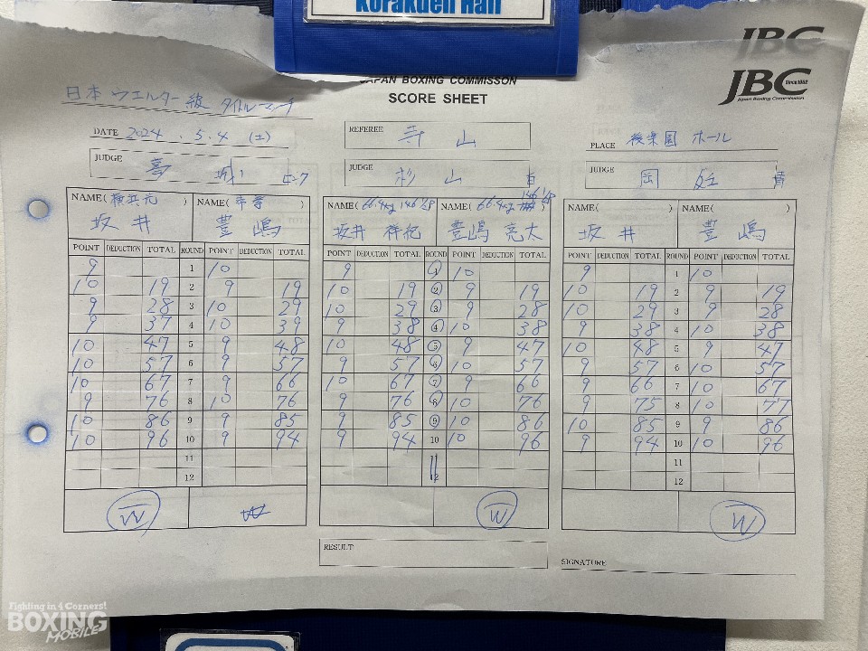 日本ウェルター級タイトルマッチが4日、東京・後楽園ホールで開催された「第15回WHO'S NEXT DYNAMIC GLOVE on U-NEXT」のメインイベントで行われ、チャンピオンの坂井祥紀(33=横浜光)と豊嶋亮太(28=帝拳)が拳を交えた。