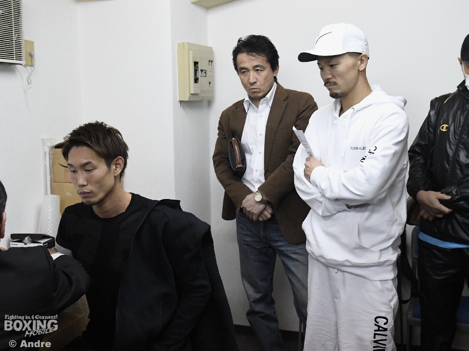 12回目となるタイトル戦の計量を100gアンダーの61.1kgでパスした中谷は「相手は思っていた以上に身長が低かったですね。明日は、どうやってもKO決着になると思います。明日はしっかり勝ちます。応援よろしくお願いします」と落ち着いた様子で語った。