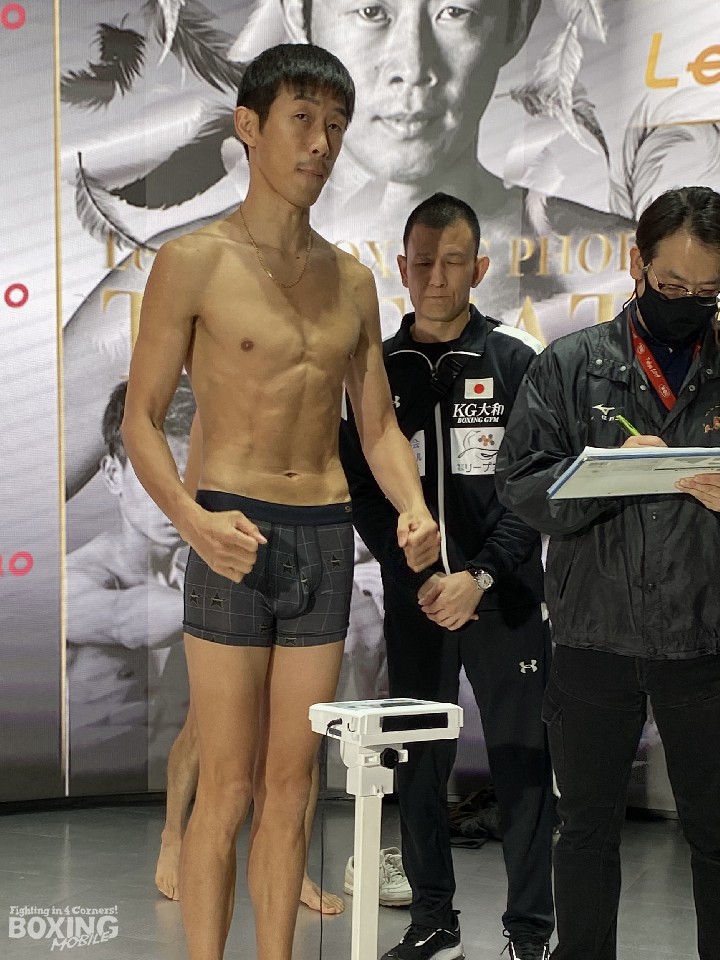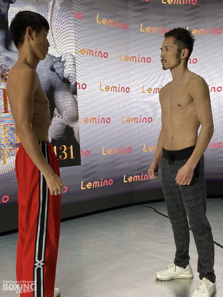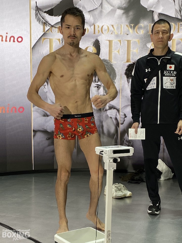 昨年3月の世界戦から再起2戦目のリングに上がる阿部は、フェザー級リミットを100g下回る57.0kgでクリアした。横に並んだ清水を見て「思っていたより大きさは感じなかった」と感想を語り、「スパーリングもコンスタントにできたし、しっかりと仕上がった」とベストコンディションを強調した。