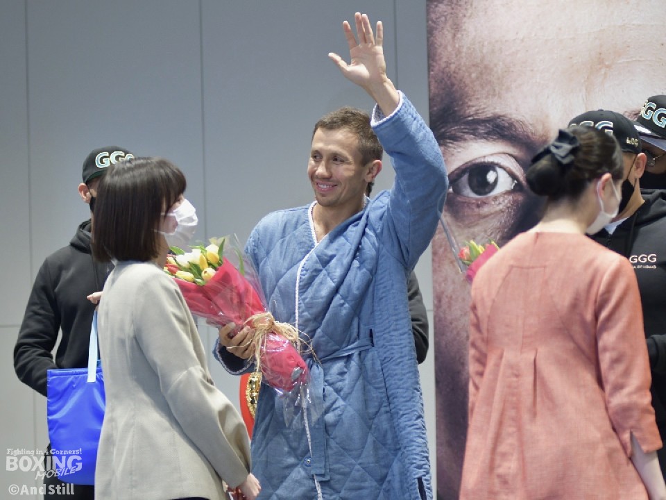 この日、40歳の誕生日を迎えたゴロフキンには、帝拳ジムより、40本のチューリップとカタカナで「ゲンナジー」と彫られた判子がプレゼントされた。昨日の記者会見とは、打って変わって、ゴロフキンからもピリピリとした雰囲気が漂っていたが、バースデーサプライズには、思わず笑顔を見せた。