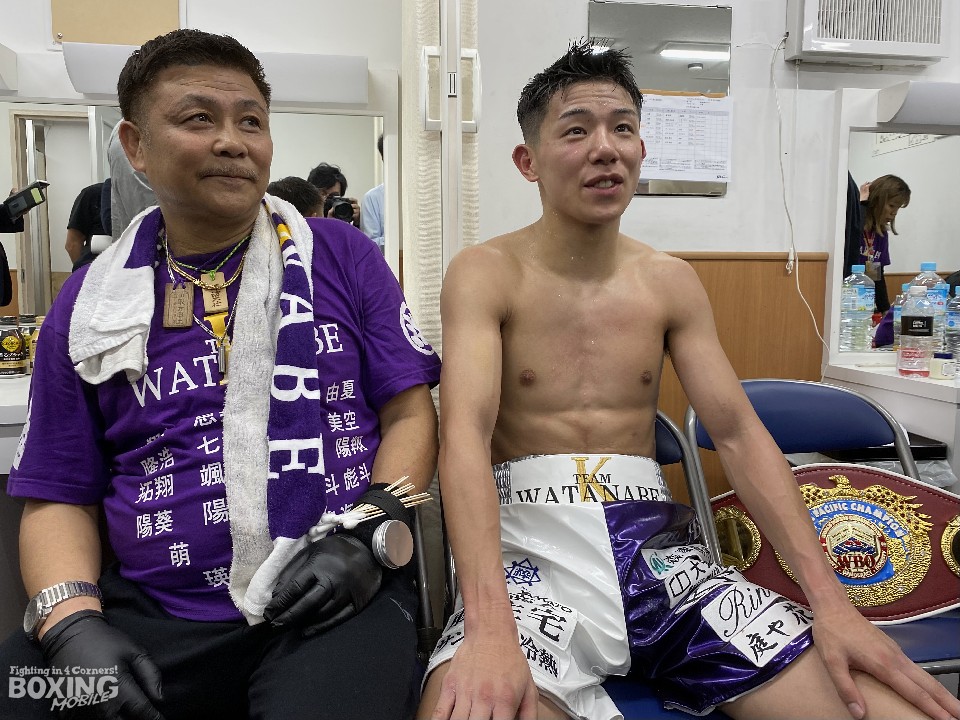 「一度、接近戦で勝負してみようと、ガードを固めて前に出たら、思いのほかパンチが当たった。(7ラウンド前に)父から『ボディからの返しの左フックが当たるぞ』とアドバイスされたのがハマった」と、勝負を決めた左フックについて振り返ると、「自分からもっと前に出ないといけないが、前回の試合より少し前に出ることができた」と及第点を与えた。