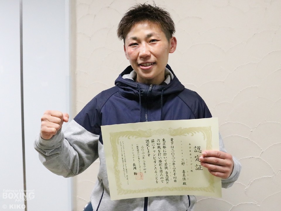 再びベルトを巻いた三好は「ポイントは計算せず、とにかく攻めることだけを考えて戦った。(若狭選手は)勢いがあったが以前ほどは感じなかった。ジャブが当たったので相手は迷ったのかもしれない。インパクトのあるパンチを入れることができたと思う」と喜びに浸った。
