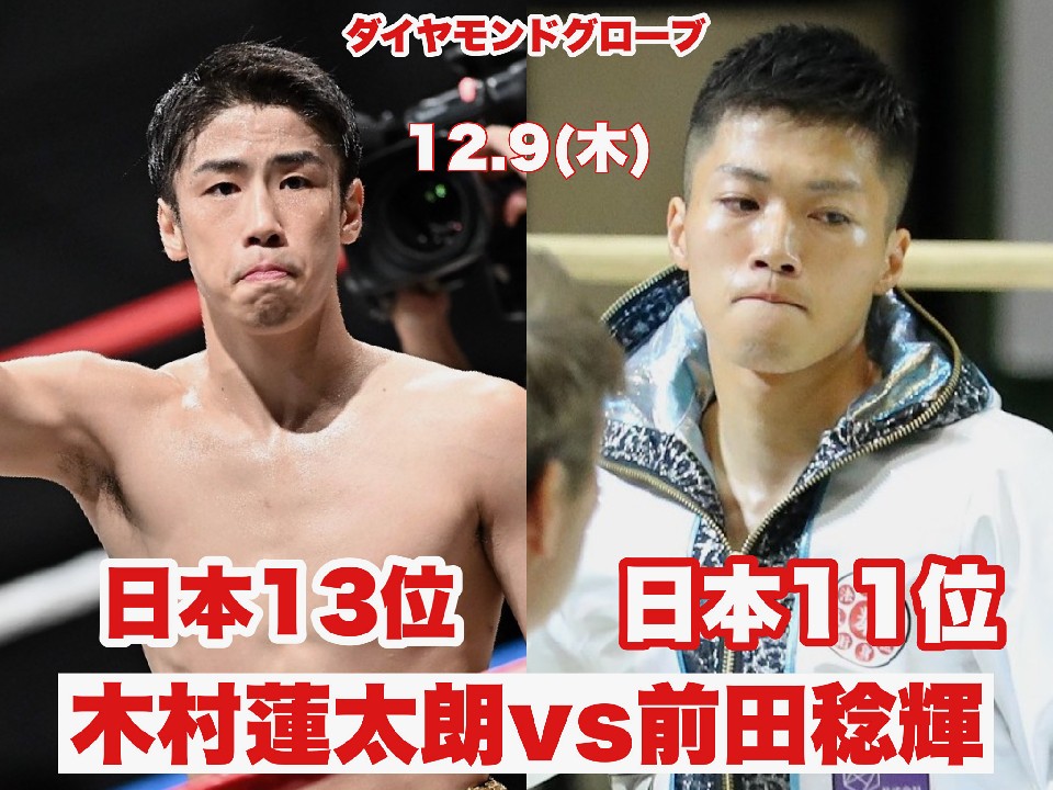 さらにセミファイナルではホープ対決、日本フェザー級11位の前田稔輝(25=グリーンツダ)と同級13位の木村蓮太朗(24=駿河男児)がスーパーフェザー級8回戦で激突する。