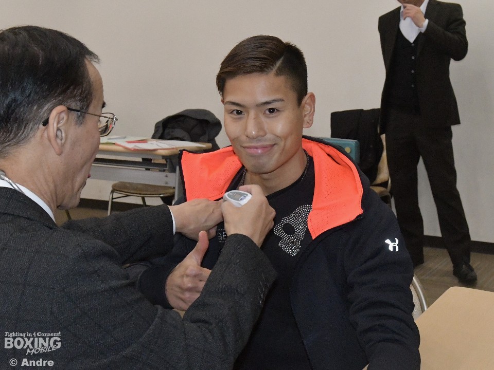 清瀬はバンタム級リミット53.5kgから100gアンダーの53.4kgで計量をパス。「体調は絶好調です。無事に相手も計量をパスしてくれて安心しました。昨日くらいから戦いは始まっているので、明日は間違いなく勝ってWBOアジアのベルトを獲ります」と白い歯を見せた。「相手の印象は特にないですね。明日は前半しっかり距離を確認して、後半には倒したいと思います。応援よろしくお願いします」と拳を握った。