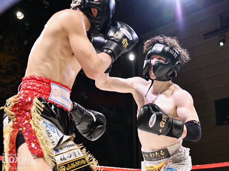 ジャブからワンツーにつなげる森口に対し、拳四朗はガードを固めながら右アッパーで対抗。2回、拳四朗はステップインから右ストレートで顔を弾くと、会場がどよめいた。3回、森口はワンツーを決めるが、拳四朗はプレスを強めて手数で応戦。4回、拳四朗は右アッパーから細かい連打を繰り出せば、森口も気持ちで負けじと打ち返した。