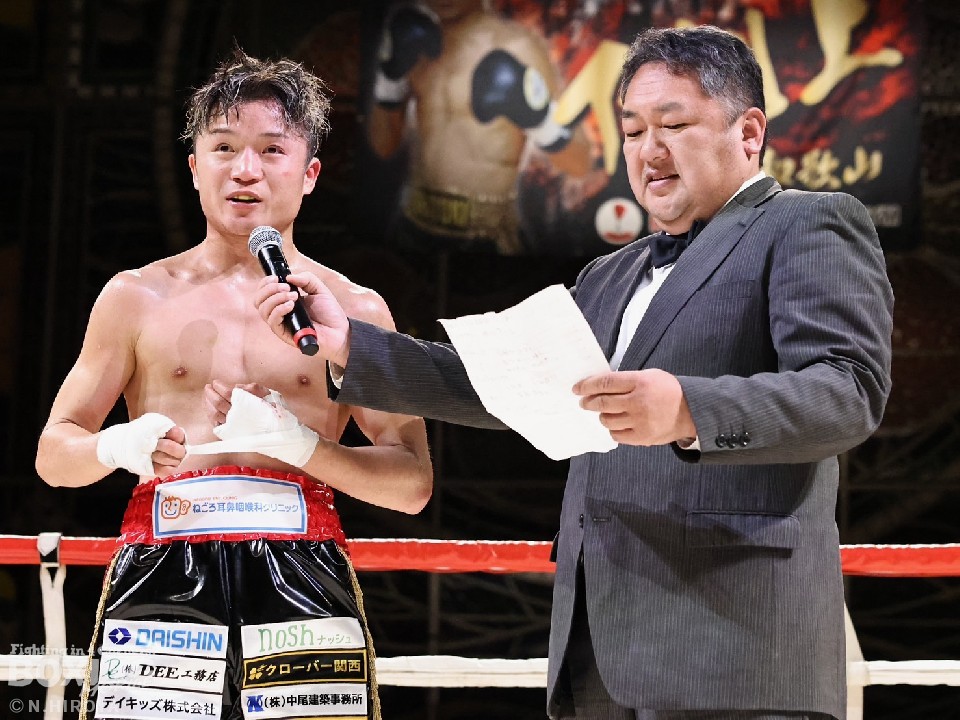マイクを握った森口は「このような機会を作っていただき、感謝している。拳四朗さんは本当に強く、良い経験をさせてもらった。これからも強さに磨きをかけていきます」と挨拶した。