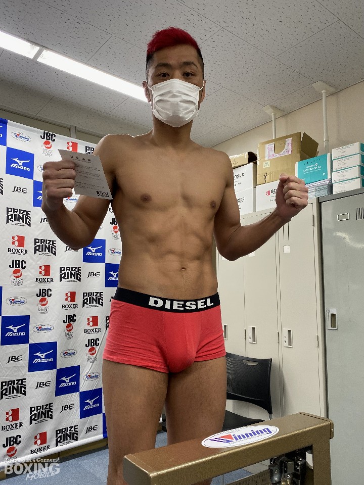 一方、約2年7ヶ月ぶりのタイトル戦に臨む川崎は、100gアンダーの69.7sでクリアした。これまでウェルター級を主戦場としてきた川崎だが1階級上げてベルトを狙う。「減量幅が少なくコンディションが良い」と仕上がりの良さを強調。「相手は好戦的な選手だが自分のスタイルを貫く」と意気込んだ。