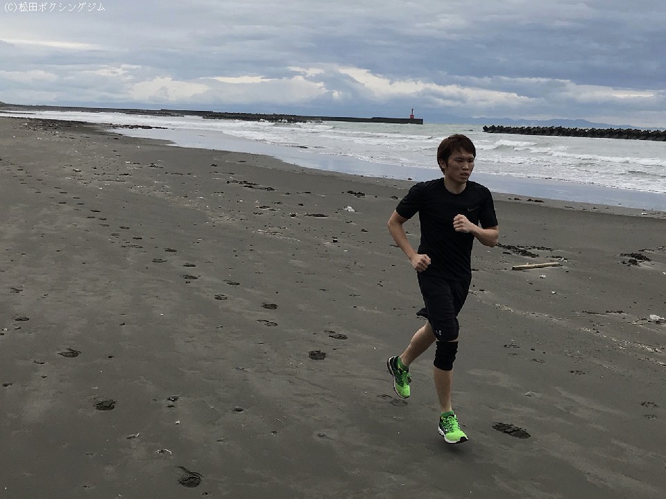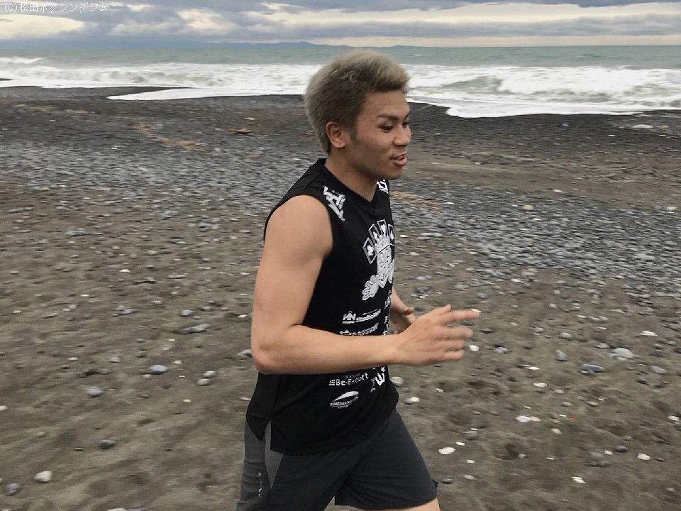 日本ユース・スーパーバンタム級王者の水野拓哉(23=松田)が1ヵ月半後の防衛戦に向け、14日から17日までの予定で静岡・静波海岸で合宿を敢行。同じく来月ユース王座に挑戦予定の中村祐斗(21=市野)とともに朝夕計20Kgの砂浜ランニングで下半身を、合間を縫ってミット打ち、シャドーなどで技術面の強化を図っている。水野は7月29日(日)に愛知・刈谷市あいおいホールで行われる松田ジム主催の「SUPER FIGHT.57」のメインで、伊藤仁也(23=三河)を迎え3度目の防衛戦を予定している。