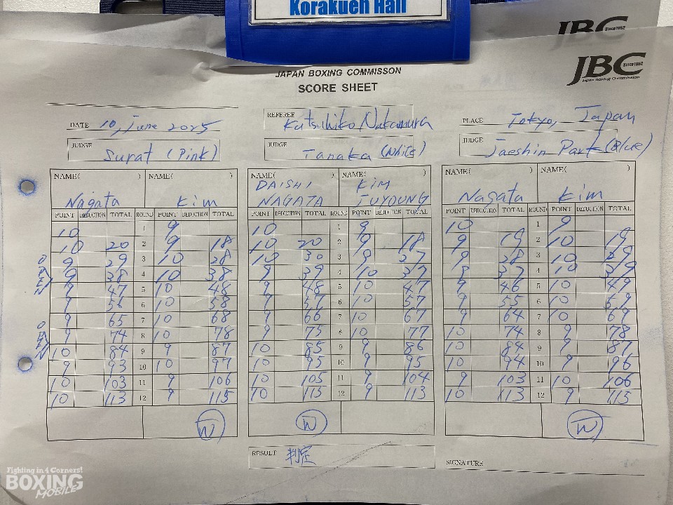 アジア2冠王者の永田は、手数と無尽蔵のスタミナで13連勝中の挑戦者キムのショートアッパーと左ボディに応じるが、回を重ねるごとにキムが徐々にペースを掴んで試合を進めていった。4回終了時はジャッジ3者3様の評価だったが、8回終了時には、キムがジャッジ全員の支持を集めた。終盤に追い上げた永田だったが、判定1-2でキムがアジアのベルトを2本韓国に持ち帰ることとなった。