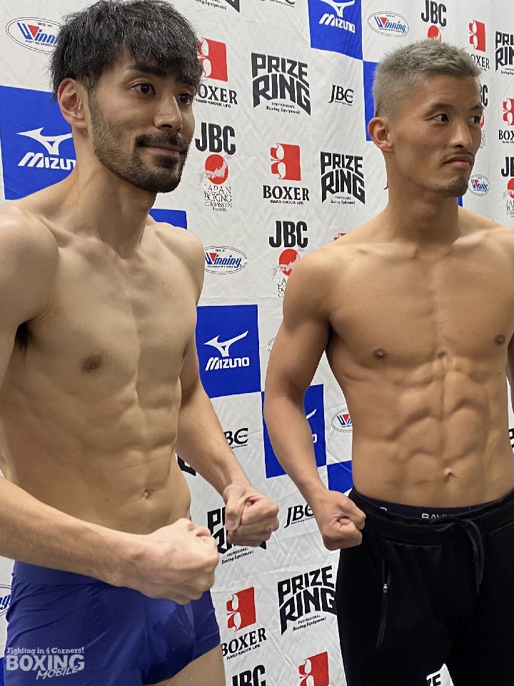 一方、「調子バッチリなんで、明日楽しみにしていてください! メチャクチャ調子いいです。絶対勝ちます!」と、笑顔で計量会場に入った粕谷も、契約体重まで300グラム残して、61.7kgで一発クリア。軽快に会場を後にした。
