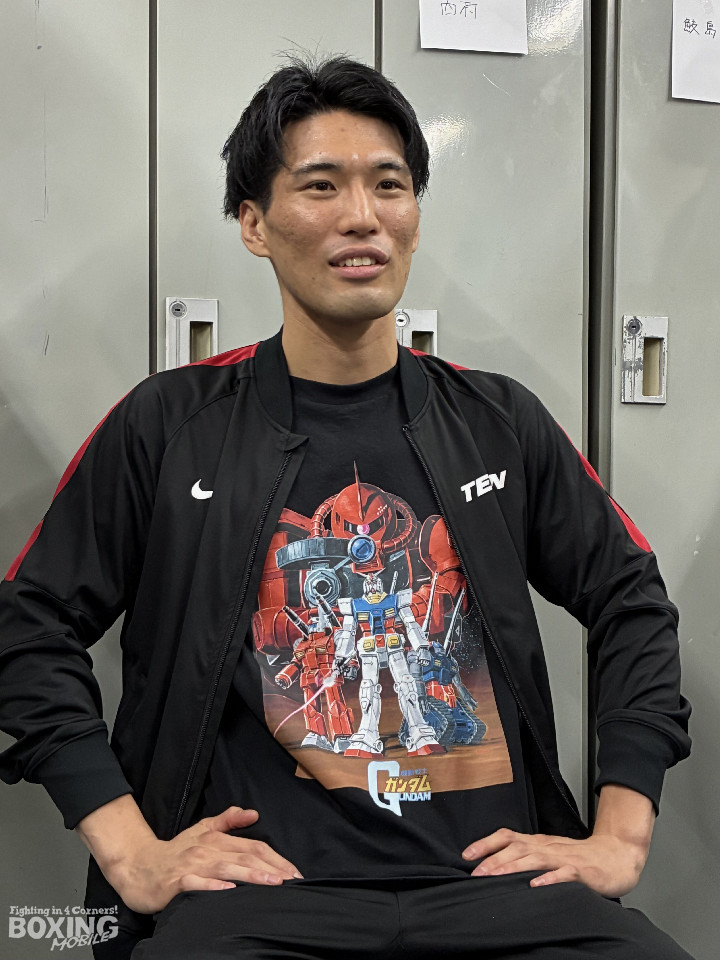 この日はアニメ「機動戦士ガンダム」のTシャツ姿で登場し、「相手は強い選手だが、読みの深さと嗅覚で上回り、攻撃的なボクシングを見せる。ニュータイプの豊嶋亮太を見せたい」と自信をのぞかせた。