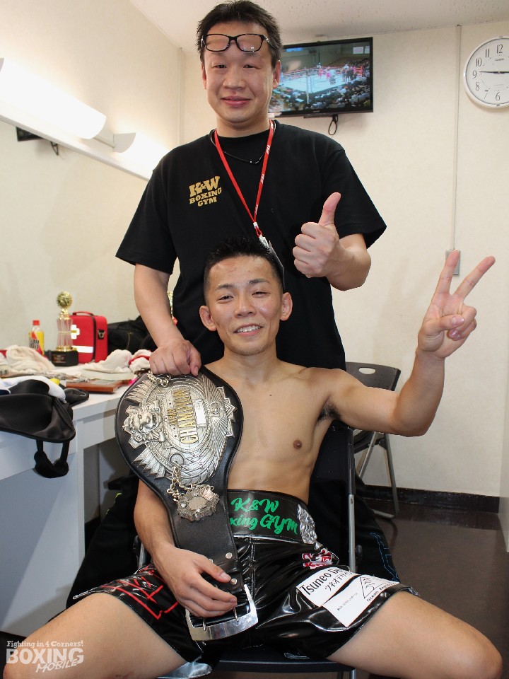 入門時から高橋とコンビを組んでいる笠康次郎チーフトレーナーは、「形はどうであれベルトを獲れたことは良かった。作戦は半分もできなかったが、最後は気持ちで押し切った。まだ実感は沸かないが、今日は褒めたいと思います」と愛弟子の活躍に目を細めた。