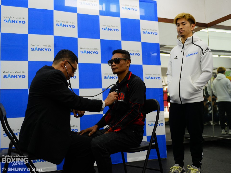 大晦日のトリプル世界戦に向け、中国の特別経済特区マカオにある『マカオボクシングハウス』で、WBO世界スーパーフライ級王座決定戦に臨む同級1位ドニー・ニエテス(比)と同級3位の井岡一翔(日本)、IBF世界フライ級タイトルマッチに臨む王者モルティ・ムザラネ(南ア)とIBF同級14位の坂本真宏(六島)、そしてWBA世界ライトフライ級タイトルマッチに臨むスーパー王者ヘッキー・ブドラー(南ア)と前IBF世界ミニマム級王者で同級1位の京口紘人(ワタナベ)の予備検診が行われた。