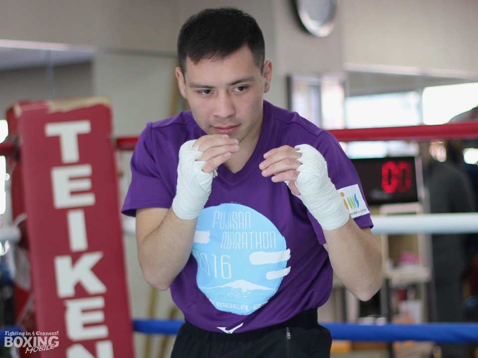 会見後の練習では滑らかな動きからハンドスピードのあるコンビネーションを披露。3ラウンドのミット打ちではガードを高く上げ、常に足を動かしディフェンス意識の高さを窺わせた。パンチ力は感じられないものの、止まらない連打は拳四朗にとっては厄介になりそうだ。その後はサンドバック打ちを2ラウンド、シングル、ダブルのパンチングボールでメニューを消化した。