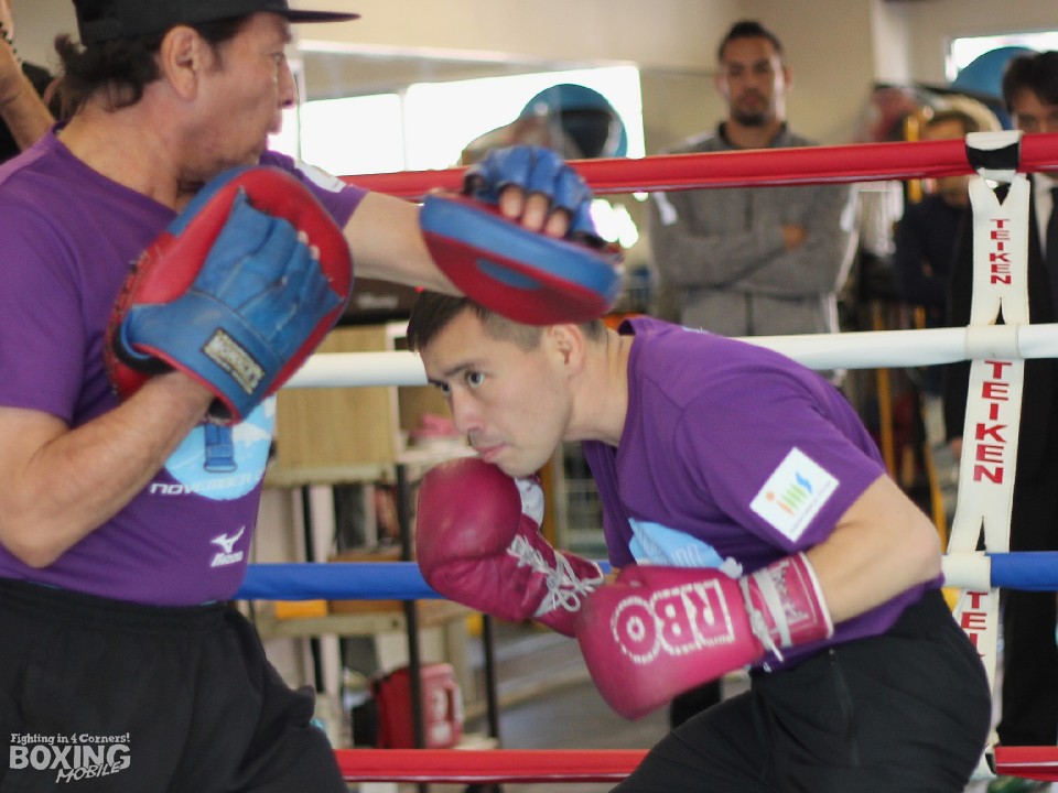 フアレスの練習を見たBMBジム寺地永会長は、「攻撃よりディフェンスを重視するボクシングで常に頭の位置を変えてくる。前回のメリンド戦よりも拳四朗のパンチは当たりにくいのではないか。多分、判定では勝てると思うが、良い試合にするためにどこでボディを当てるかだけど、ボディも打ちにくそう」とメキシカン独特のやりにくさを警戒。その上で「前回より好戦的にいくことになると思う」とプレスをかけながら攻めていく考えがあると語った。