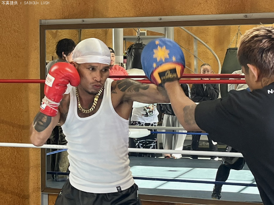 会見後に行われた公開練習ではウォーミングアップ、シャドーボクシングの後にミット打ちを披露。力強いパンチをマネージャー兼トレーナーの実兄、ジェンソン・カシメロ氏が持つミットに打ち込んでいた。特に右ストレートと左フックには、元世界王者らしい威力と迫力があり、このパンチ力を試合のリングでも披露できるかが試合を決めるカギになりそうだ。