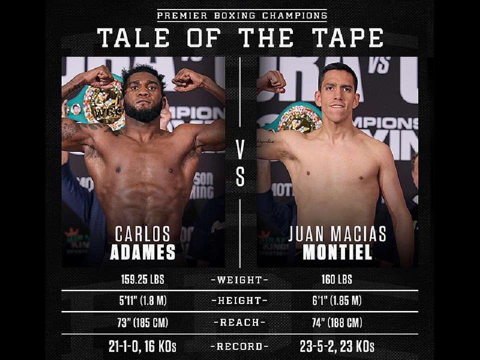 WBC同級王座に君臨するジャモール・チャーロ(32=米)が、6月の防衛戦を負傷でキャンセルしたことによる、暫定王座決定戦。アダメスは、2019年11月にWBO世界スーパーウェルター級暫定王座決定で、パトリック・ティシエラ(31=ブラジル)に判定で敗れて以来、2度目の暫定王座決定戦となる。対するモンティエルも、2021年6月にチャーロが当時保持していたWBC暫定王座に挑み判定負け、これが2度目の世界アタックとなった。