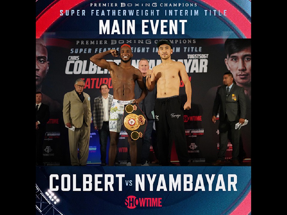 セミではマイナー団体のIBOフェザー級王座決定戦に、WBC同級挑戦者決定戦が加わったWBA&WBCフェザー級7位のツグスソグ・ニヤンバヤル(モンゴル)vsWBC同級3位クラウディオ マレーロ(ドミニカ共和国)戦が行われる。ニヤンバヤル、マレロともに同級リミットの57.1kgを200g下回る56.9kgでクリアした。