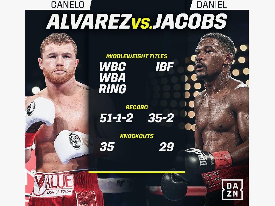 ※日本時間5月5日(日・祝)にアメリカ・ラスベガスのT‐モバイルアリーナで行われるWBAスーパー、WBC、IBF世界ミドル級3冠王座統一戦となるアルバレスvsジェイコブス戦を、ストリーミング配信サービスの「DAZN(ダゾーン)」が独占ライブ配信を行う。