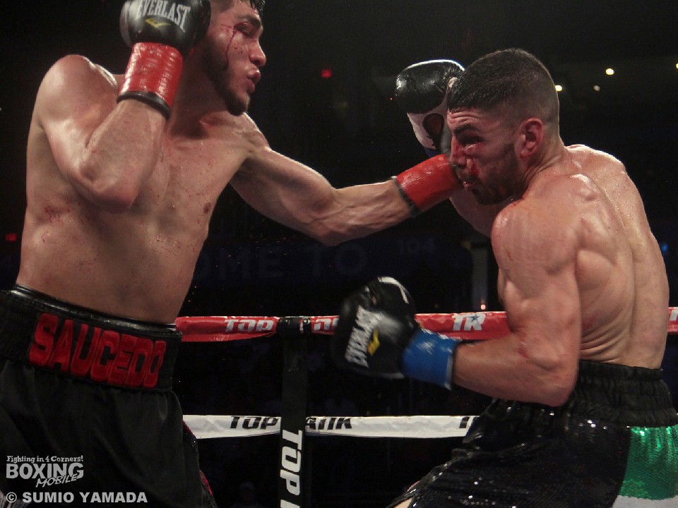 地元の大声援を受けサウセドがジャブを走らせた。負けじとザッパビグニャも重いブローで対抗、序盤からKO決着を思わせるスリリングな展開となった。3回、攻め込むオーストラリアンにカウンターを打ち込み米国人がダウンを奪った。4回にはお返しとばかりにザッパビグニャのラッシュにサウセドが捕まりピンチになり、両者とも血まみれの激戦となった。そして7回、流血が激しくなる中でザッパビグニャのセコンドが棄権の意思表示。ザッパピグニャの左目は腫れですでに塞がっていた。サウセドが7回TKO勝利。今後はWBOスーパーライト級王者のモーリス・フッカー(アメリカ)に指名挑戦者として挑む予定のサウセドの戦績は28戦全勝(18KO)、エキサイティングな試合で会場を沸かせたザッパビグニャは42戦37勝(27KO)4敗となった。