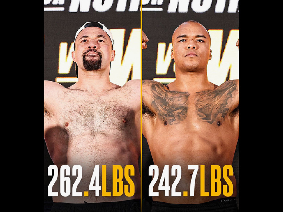パーカーは自身のキャリアで過去2番目に重い 119.0kgをマーク。一方のウォードリーは 110.1kgで計量を終え、両者の体重差は 8.9kg に及んだ。