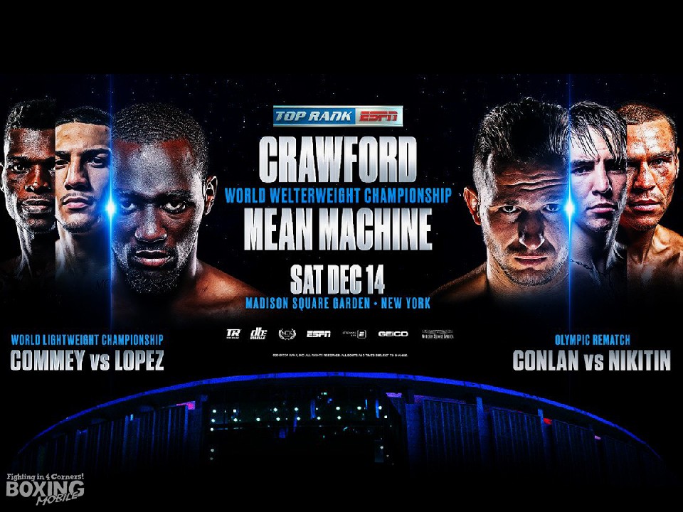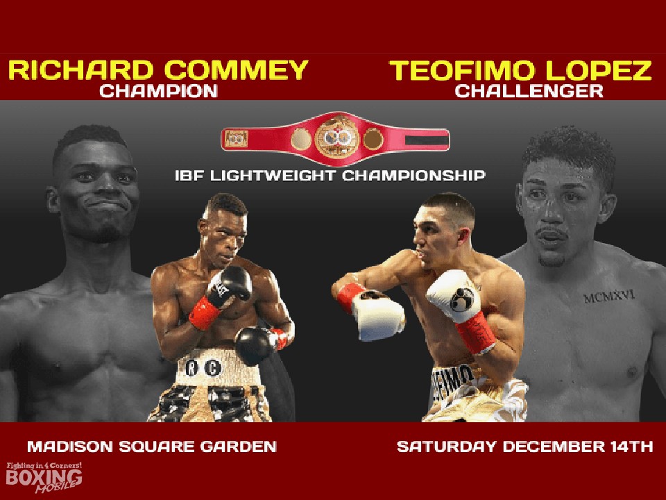 WBO世界ウェルター級タイトルマッチ(クロフォード対カバラウスカス)とダブルメインとして行われるIBF世界ライト級タイトルマッチ、リチャード・コミー(32=ガーナ 31戦29勝26KO2敗)対テオフィモ・ロペス(22=米国 14戦全勝11KO)は、KO決着が期待されるバランスのとれた好カードだ。