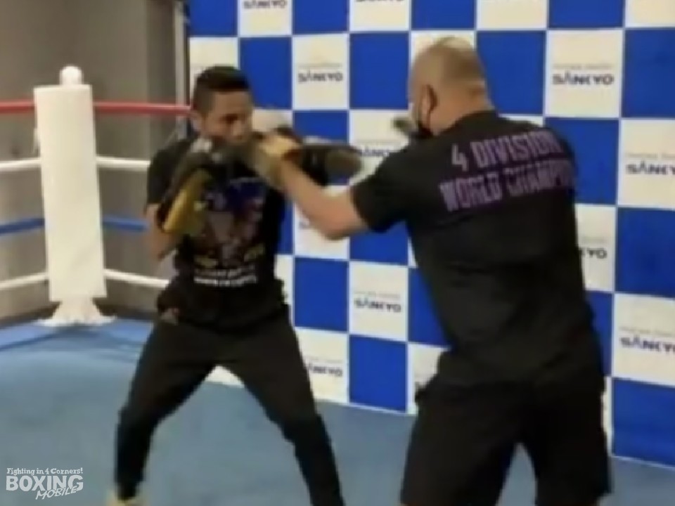 昨夜日本に到着したばかりのドニー・ニエテス(40=比)が7日、オンラインで練習を公開した。コロナ禍の影響で、ボクシングの世界戦に出場する選手は、PCR検査が義務付けられているため、報道陣との対面取材による接触は、検査が行われる予備検診以降となる。