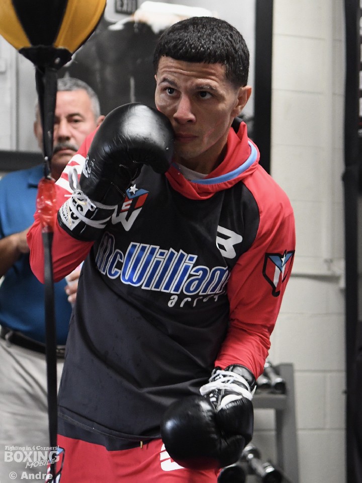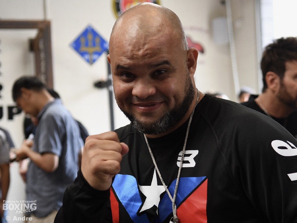 WBC(世界ボクシング評議会)シルバーSフライ級王者でWBC・WBO(世界ボクシング機構)世界Sフライ級3位のマック・ウィリアムズ・アローヨ(プエルトリコ)が5日(日本時間6日)、米国カリフォルニア州サンタモニカのワイルドカードジムで公開練習を行った。3日後に開催される「Super fly3」で世界3階級制覇王者の井岡一翔(米)と対戦するアローヨは「イオカは偉大なチャンピオンだ、だから倒し甲斐がある」と不敵な笑みを浮かべた。