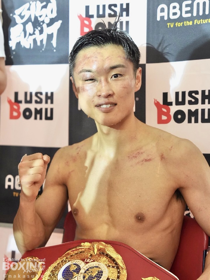 世界初挑戦で大仕事をやってのけた西田は、「勝てないと言われていたので、本当にうれしい。夢のようです」と、赤色のIBFベルトを膝の上に置いて、勝利の味を噛み締めた。