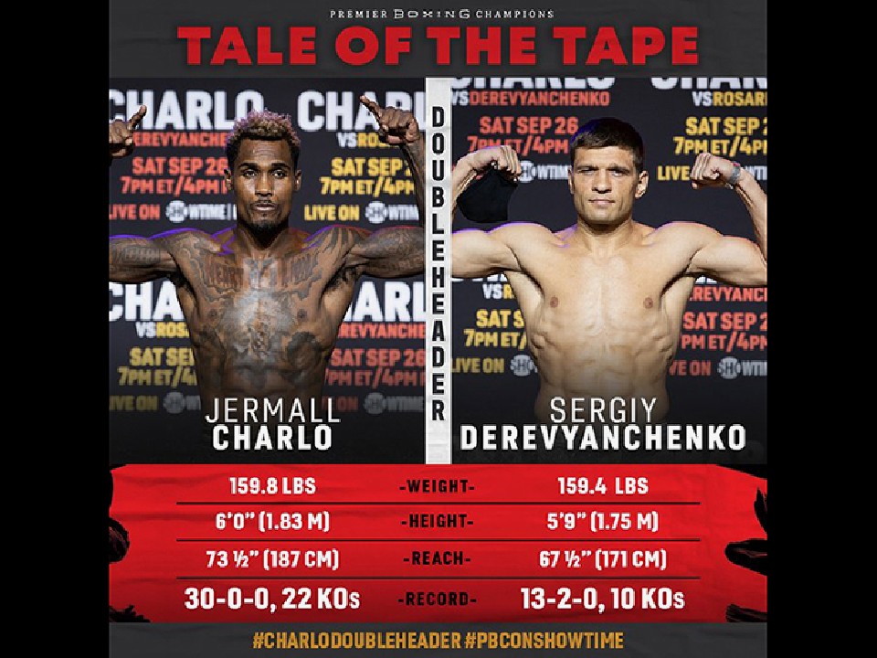 PPV最初の1部でメインとなるジャモール・チャーロのWBC世界ミドル級正規タイトルマッチ。同級リミット72.5kgを王者チャーロ、挑戦者WBC同級1位セルゲイ・デレイビャンチェンコ(34=ロシア)が揃って300gアンダーの72.3kgで合格した。