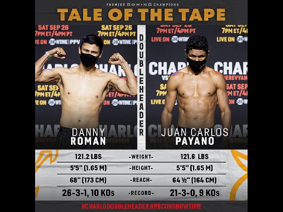 WBC世界スーパーバンタム級挑戦者決定戦には日本でもお馴染みの二人が登場。元同級2冠王者のローマンが、元同級王者のファン・カルロス・パヤノ(26=ドミニカ共和国)と対戦。同級リミット55.3kgをローマンが400g軽い54.9kgでパス、パヤノは200g少ない55.1kgを秤の上で記録した。