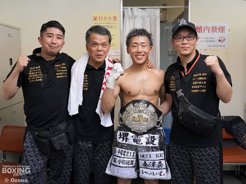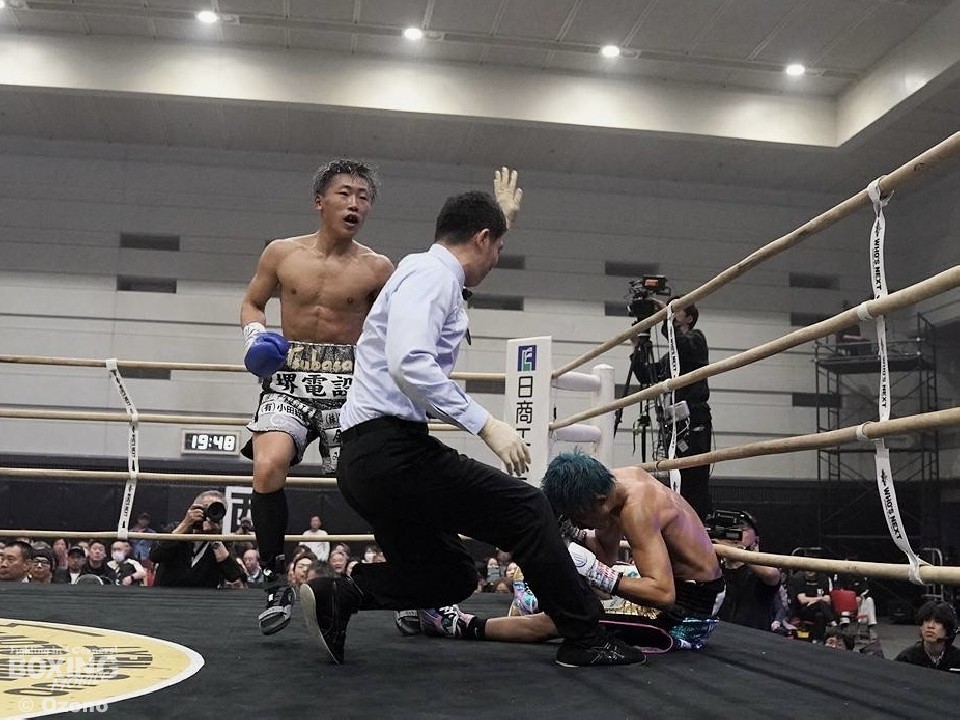 激しいペース争いの中、右クロスで攻勢をアピールした。「坂選手(坂晃典=仲里)と原選手の試合映像を見て『このパンチが当たるのではないか』と、ジムと話し合いながら作戦を立てた。ダウンを奪った左フックは、自然と出た。途中、クリーンヒットが奪えず心が折れそうになったが、坂戦(2022年9月、日本王座に挑戦したが逆転KO負け)のことを思い出した。ここで折れたら前と一緒だと思った。原選手が粘り強いのはわかっていたので、じっくりと攻めた」と試合を振り返った。