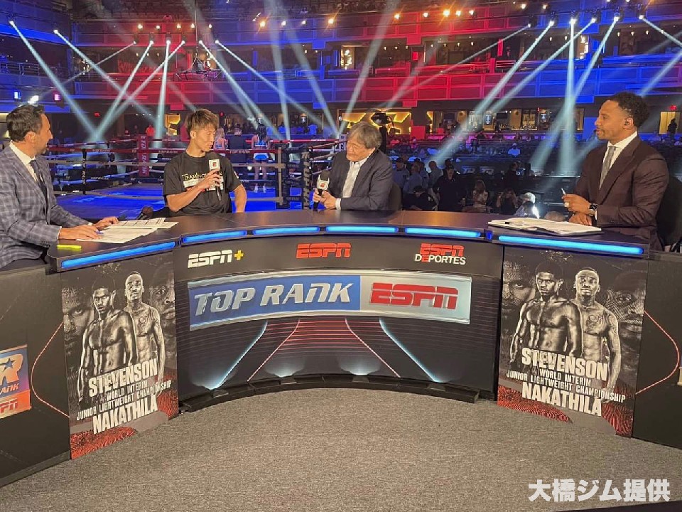 井上は、ヴァージンホテル・ラスベガスで行われたトップランク興行、WBO(世界ボクシング機構)スーパーフェザー級暫定王座決定戦、シャクール・スティーブンソン(23=米)対ジェレミア・ナカティア(31=ナミビア)戦のテレビ中継にゲストとして呼ばれ、生中継で全米に放送された。