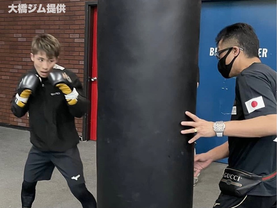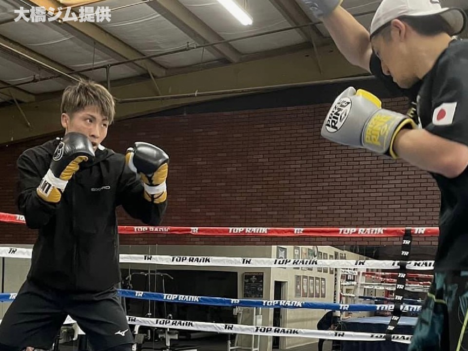 シャドーボクシングの後は、従兄弟で元日本・WBOアジアパシフィック・スーパーライト級王者の井上浩樹(29)とのマススパーを行い、サンドバッグ打ちでメニューを消化した。