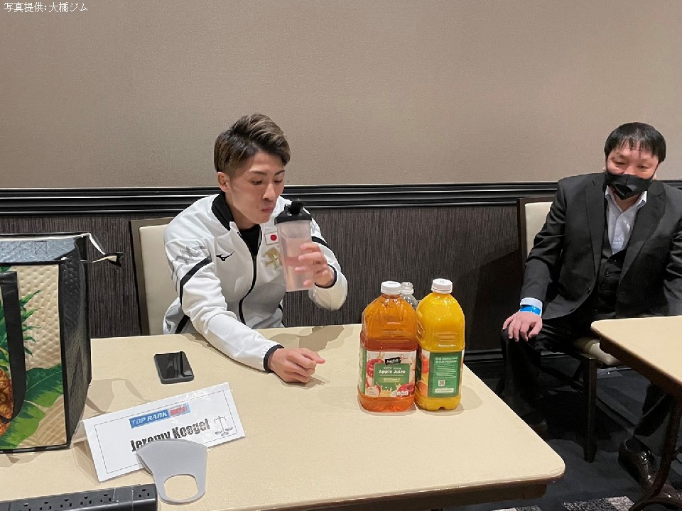 夕食は、ラスベガスにある和食レストランを貸し切りにして食事。夕食後はヴァージンホテルへ一度戻り、試合に向けたPCR検査を行った。井上は弟で元WBC(世界ボクシング評議会)バンタム級王者の拓真(25)、従兄弟で元日本・WBOアジアパシフィック・スーパーライト級王者の井上浩樹(29)とコンドミニアムホテルに戻って一泊する予定だ。