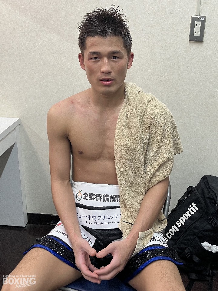 勝利のポイントに集中力を挙げた。「パンチを芯でもらわないように、特に右を注意していた。相手に気持ちよく打たせないことを心掛けた。今日はあまりパンチをもらっていない」と話すと、「1ポイント差は許容範囲」と、公開採点でも決して慌てずに冷静だったことを強調した。
