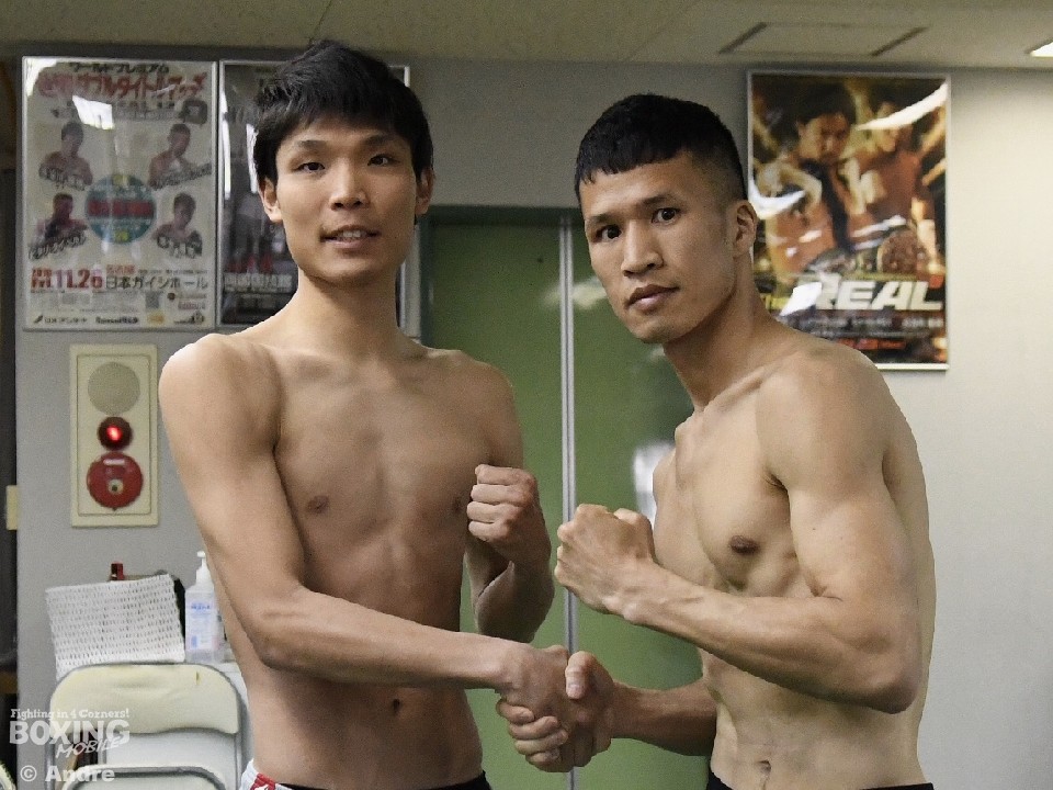 ボクシングファン注目の関西期待の好カード、フェザー級10回戦の前日計量が27日、神戸市内の真正ジム事務所で行われた。前WBA世界スーパーバンタム級王者で、現WBA世界フェザー級7位の久保隼(真正)と世界戦経験のある元OPBF東洋太平洋フェザー級王者の大沢宏晋(ロマンサジャパン)が計量を終え意気込みを口にした。