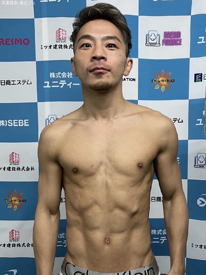 先に秤に乗った冨田は、ライトフライ級リミットちょうどの48.9kgでクリアした。かつてWBOアジアパシフィック王座を保持していた冨田だが、日本王座への思いは強い。「この試合に向けて、やるべきことはすべてやってきた。やり残しはない」と万全の状態をアピール。