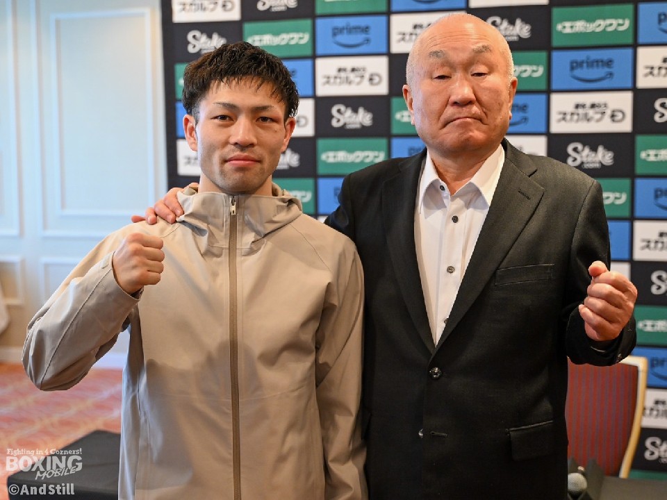 会見に同席した倉敷守安ジムの守安竜也会長は、「プレッシャーをかけて打っていって、よかった」と、新チャンピオンを労い、「三度目の正直で願いが叶ってよかった。ベルトをかけられて嬉しかった」と静かに喜びの言葉を重ねた。