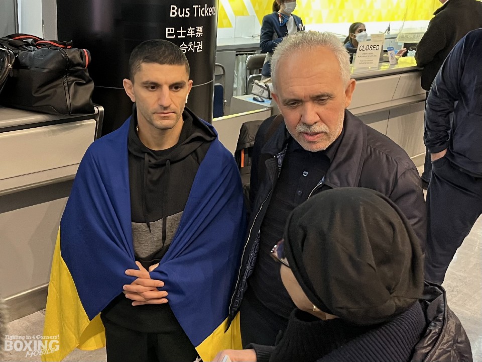 キーウからワルシャワまで18時間バスで移動し、ワルシャワから飛行機に乗ってきたというダラキアン陣営は、本人を含めて総勢9名。トータルで約2日半かけて来日を果たした。やや疲れた様子だったが、「ただ日本に来たわけじゃない。3人娘1人息子のためにも、必ず防衛してベルトを持って帰ります」と高らかに宣言し、チャンピオンベルトとウクライナ国旗を掲げた。