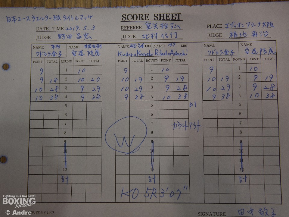 本多正孝会長は「練習していたボディが出せなかったね。スパーリングでは出るのにね。クドゥラはまだ若いのでユースを防衛しながら、あとはランキングを見ながら次戦を考えていきます。まあ、経験を積んでいきたいですね」と、21歳の愛弟子の成長を期待した。
