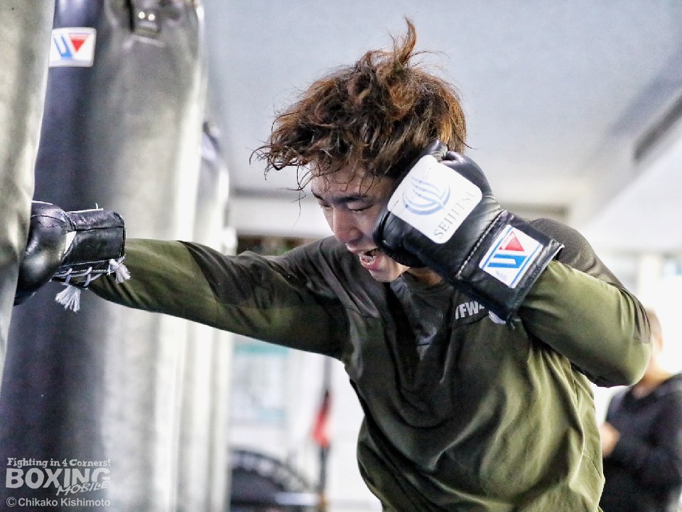 会見後には、2023年度東日本スーパーフライ級新人王の佐藤祐(19=三迫)と3ラウンドのスパーリングを披露。距離を意識しながらジャブを軸に組み立てると、プレスをかけてくる佐藤に対し、右ボディストレート、左ボディで迎え撃った。3回には右ショートで顔を弾くと、回転力で上回った。その後はミット打ちとサンドバッグ打ちで、たっぷりと汗をかいた。
